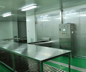 網(wǎng)帯傳送在庫(kù)風(fēng)返回, 進(jìn)貨欄五面保溫, 貨口處附以可調(diào)不銹鋼擋風(fēng)保溫板。 出貨欄六面保溫,可實(shí)現(xiàn)自動(dòng)落料,保持網(wǎng)帶傳送在低溫下運(yùn)行。采用可調(diào)熱波動(dòng)吹風(fēng)方式,提高冷風(fēng)著力點(diǎn)及速凍效率。除進(jìn)出貨口外, 凍品在傳送隧道風(fēng)部相對(duì)封閉,社絕凍品翻起,吹出網(wǎng)帯。